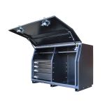 The 850H Series Aluminium 4 Drawer Minebox in black is ready to work as hard as you do. With a ripple powder coated finish and a roomy interior featuring four drawers, it keeps your tools organised and your ute setup looking sharp.